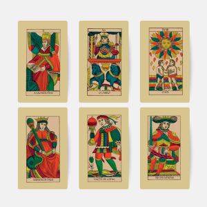 O Tarô de Marselha Clássico foi criado em meados de 1751, por Claude Burdel. Ele está em conformidade com o modelo do Tarô de Marselha em todos os aspectos, porém traz elementos característicos dos baralhos suíços, dotados com muitos ornamentos e decorações florais particulares. O kit tarô de Marselha Clássico é composto por Quantidade de cartas: 80Formato das cartas: 7×12 / Papel: couche 300gr / Cor: 4×4 Livreto: 7×12 / Qtd páginas: 36 / Cor: 1×1 / Papel: offset 70gr / Acabamento: grampoCaixa: Papel Cartão triplex / Cor: 4×0 Formato da caixa: 7.5 x 3.6 x 12.5 cm