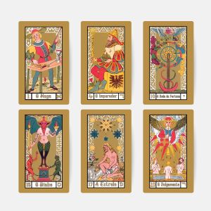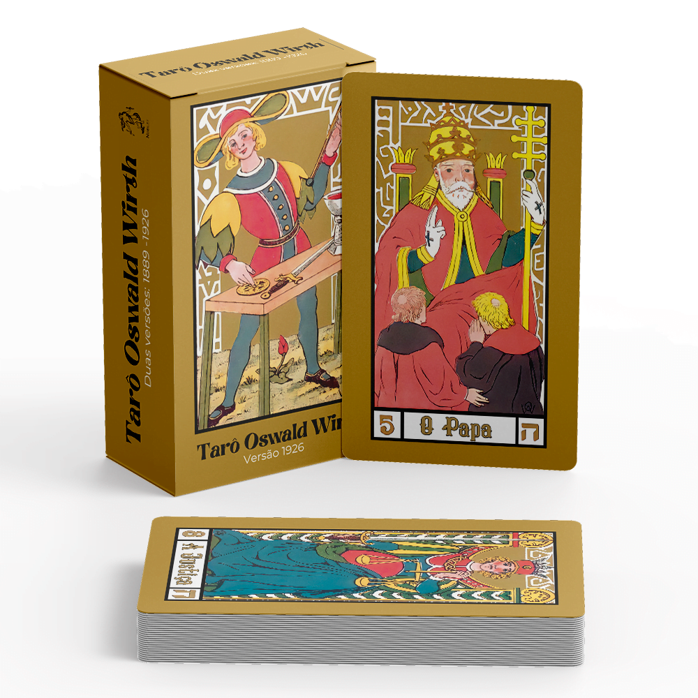 O Tarô de Oswald Wirth é considerado o primeiro Tarô de uma longa linhagem de baralhos ocultos, esotéricos, mistéricos e iniciáticos. Por essa razão, tem um significado muito importante na longa história do Tarô. A primeira versão deste Tarô foi criada em 1889, sobre a orientação de Stanislas de Guaita, com quem Oswald Wirth estudou esoterismo e simbolismo ao longo de sua vida. O kit tarô de Oswald Wirth é composto por Quantidade de cartas: 47Formato das cartas: 7×12 / Papel: couche 300gr / Cor: 4×4 / faca de corte A0825-3211 / Laminação: brilho, frente e versoLaminação: brilho, frente e versoLivreto: 7×12 / Qtd páginas: 36 / Cor: 1×1 / Papel: offset 70gr / Acabamento: grampoCaixa: Papel Cartão triplex / Cor: 4×0 Formato da caixa: 7.2 x 2.0 x 12.5 cmPosteriormente, em 1926, Wirth redesenha suas cartas para acompanhar a publicação de seu livro Le Tarot des Imagiers du Moyen-Age, publicado no Brasil pela Editora Ardane, sob o título de O Tarô dos Magistas. Mais maduro em sua composição e com traços mais rebuscados, tanto o baralho quanto o livro são considerados obras clássicas, frutos de mais de 40 anos de pesquisa de Wirth acerca do Tarô, sob as perspectivas maçônicas e cabalísticas que permeiamo esoterismo ocidental.Este baralho traz as duas versões dos arcanos maiores desenvolvidos por Oswald Wirth: a de 1889 e a de 1926